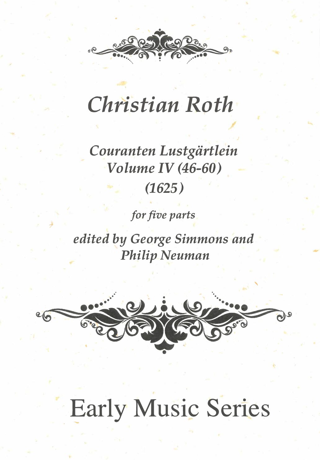 Couranten Lustgärtlein, Volume IV (46-60) (1625) for five parts. This edition comes with added Tenor and Altus parts in C clefs.