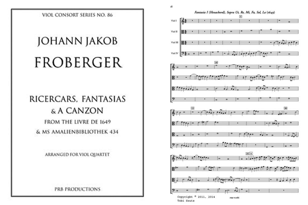 Tobi Szuts has transcribed another group of Froberger's keyboard pieces for viol quartet (treble, two tenors and bass). These contrapuntal pieces often begin sedately, but their apparent predictability can quite suddenly surprise the players. Rhythms and meters are variable, making these pieces a continual adventure to play.