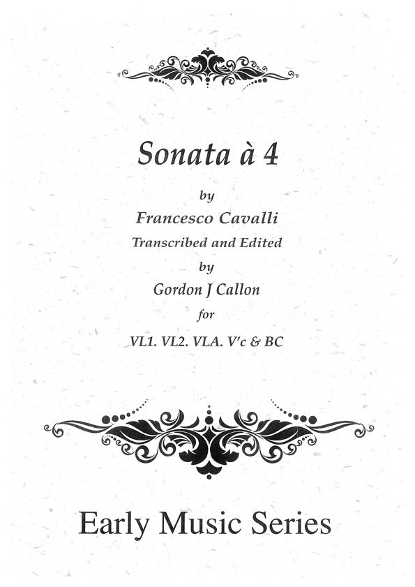 Transcribed & edited by Gordon J Callon. Cavalli’s Sonate or Canzoni were published in Venice in 1656, with the instrumental pieces placed after the vocal music at the end of each part book. Gordon Callon in his very extensive and comprehensive preface tells us that these instrumental pieces represent a mid-point in the development of the Renaissance canzona and ricercar into the later Baroque sonata.